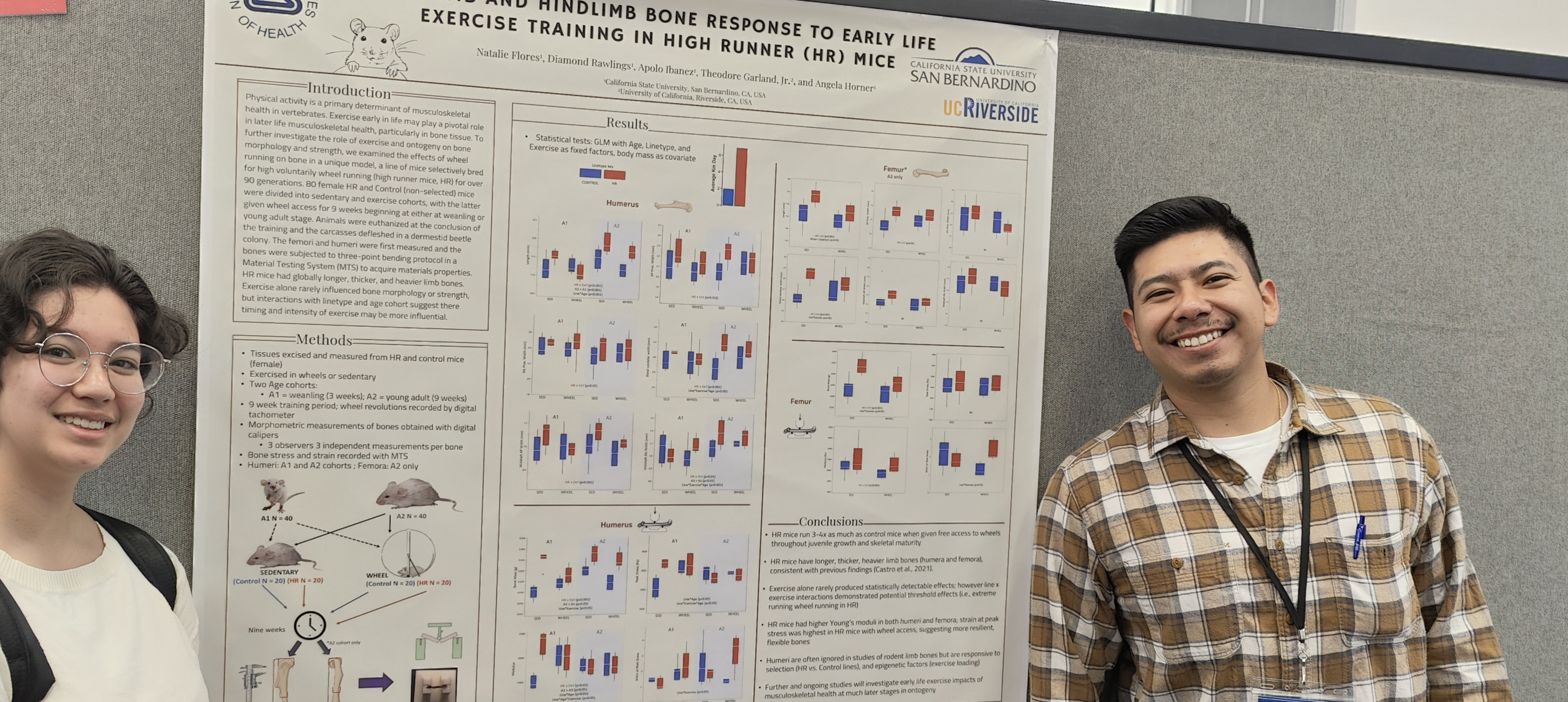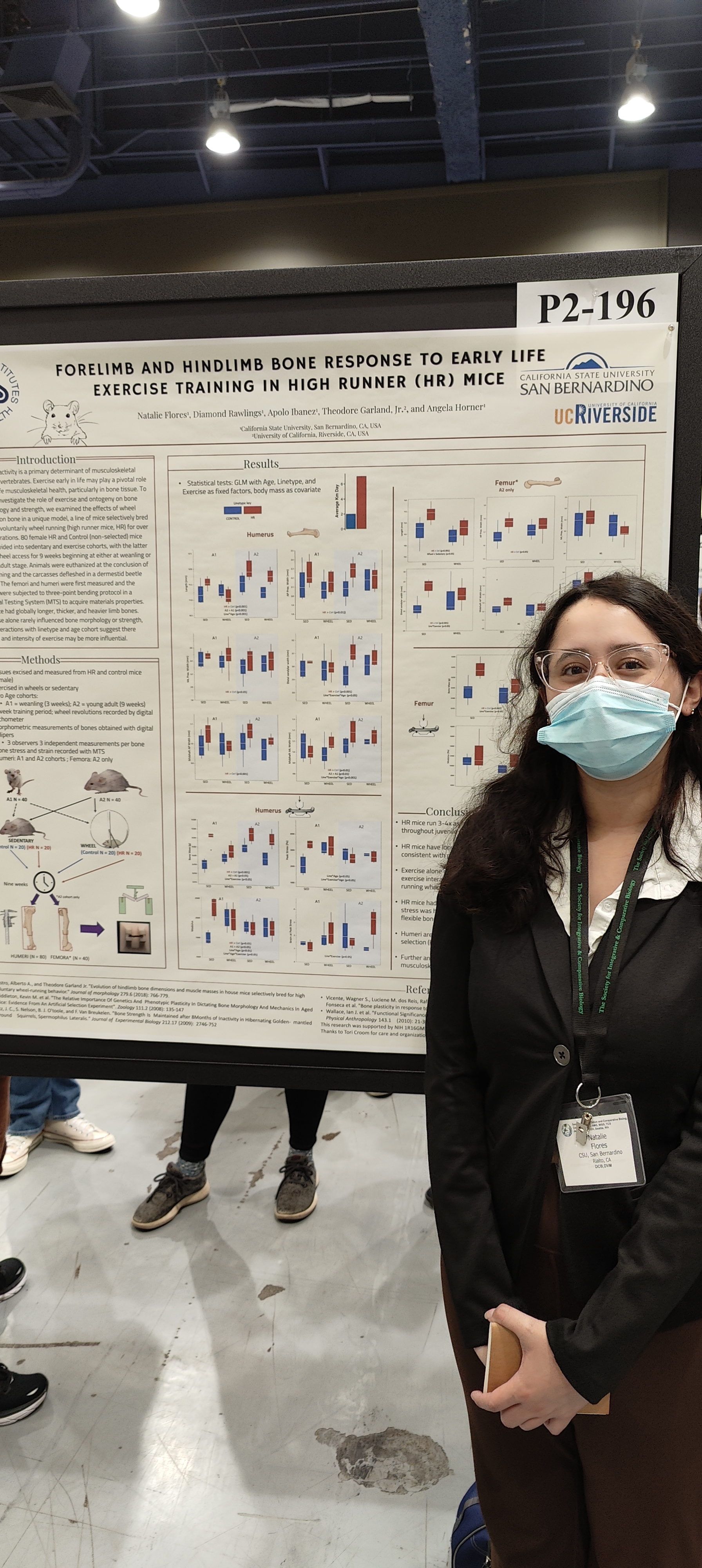 A graduate of CSUSB with extensive research experience (also in the Horner Lab), Apolo took a gap year to work in Dr. Natalie Holt’s lab at UC Riverside. Now he is interested in exploring the interactions of age, exercise, and biomechanical properties of soft tissues and currently overseeing an NIH funded project that includes over 100 mice, 5 undergraduates, and 1 PI!